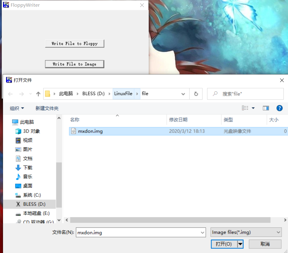 文字写的很清楚,将文件写入image文件中,所以提前应该创建一个img文件。