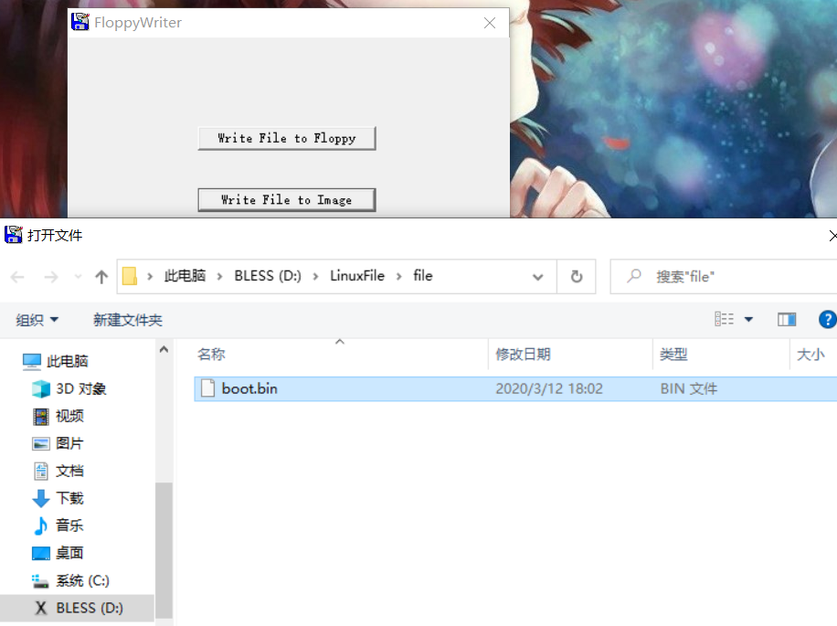 这要用到Floppy这个工具,双击打开,选择Write File to Image