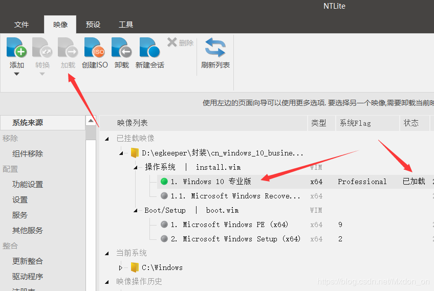 双击加载所要精简的系统,或者选中后点击上面的加载。
