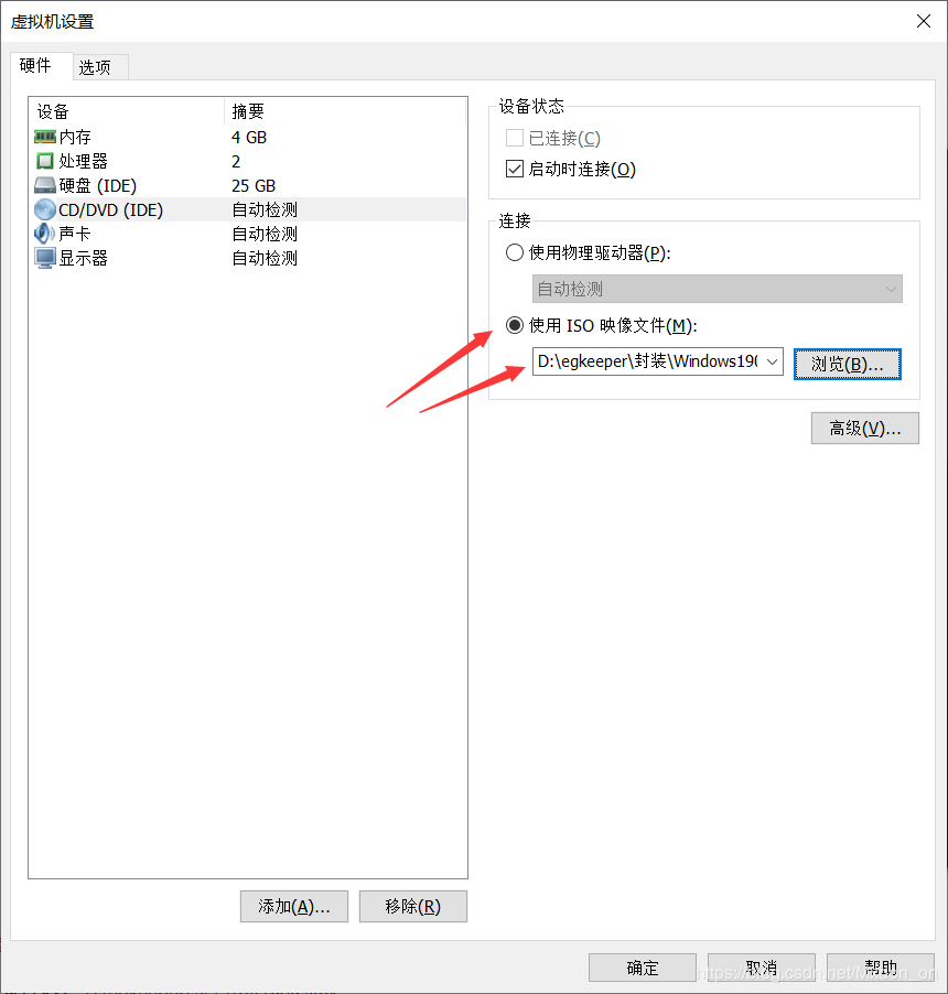 然后将软件打包成镜像文件,在虚拟机设置中——将ISO镜像文件设置替换之前的系统镜像。