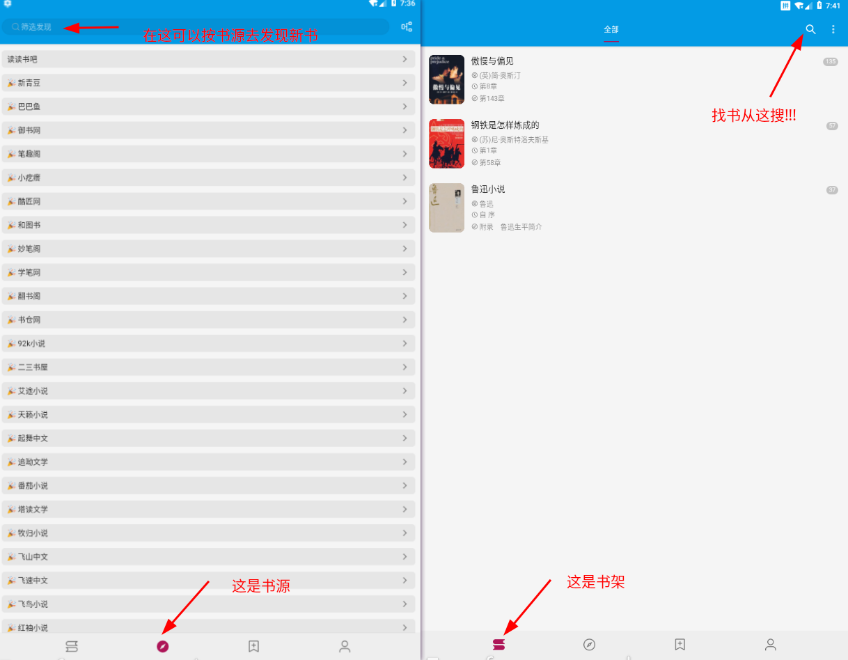 - 添加完以后,在主页发现页可以看到许多书源,在首页可以对其进行搜索