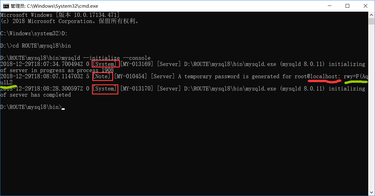 然后输入mysqld –initialize –console