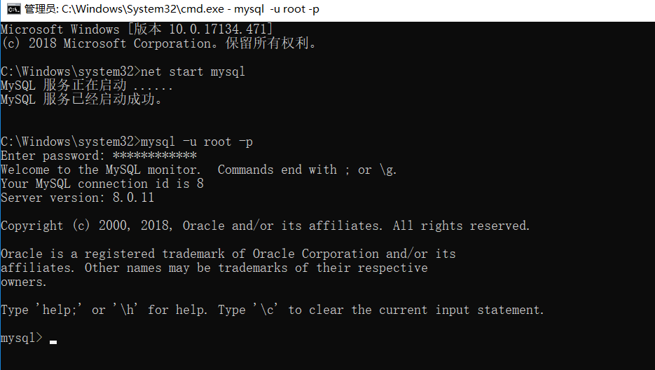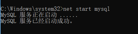 输入net start mysql命令来开启mysql服务