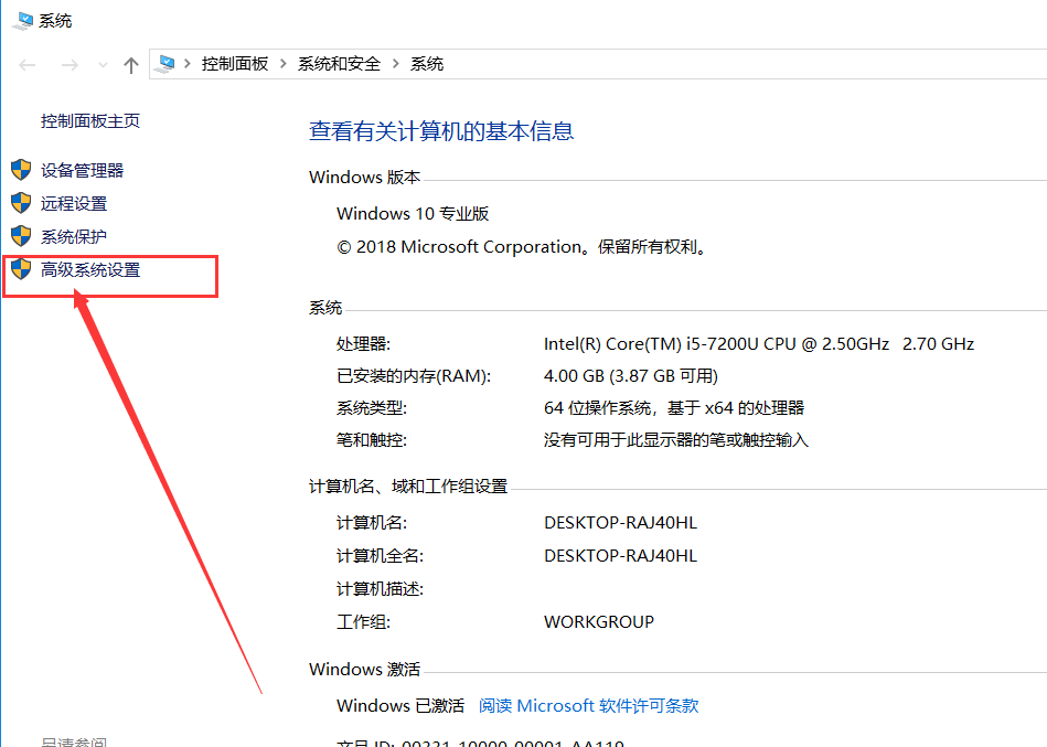 然后点击“高级系统设置”