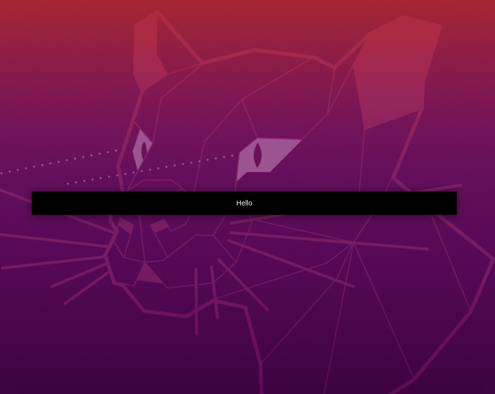 安装后打开,弹出一个黑色条状窗口,里面写着Hello