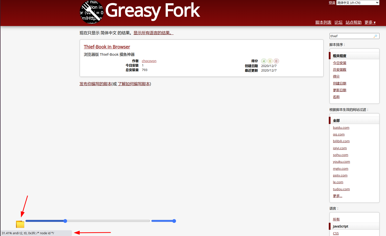 同样,Thief在油猴中也有相应的脚本,只不过是thief book,也就是只支持阅读本地文档。