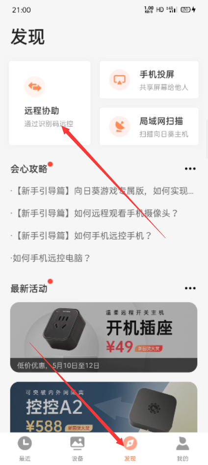 登陆后点击“发现-远程协助”