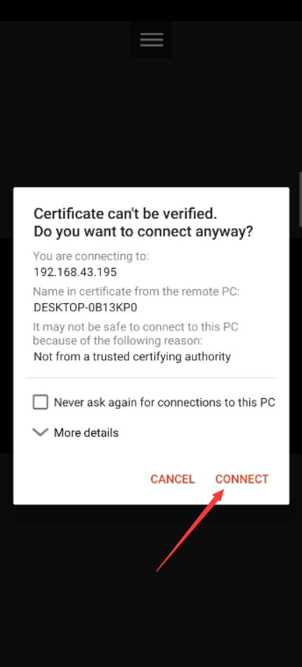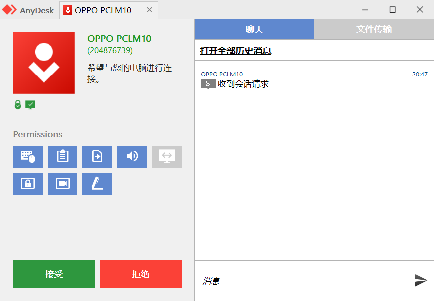 电脑端接受连接请求: