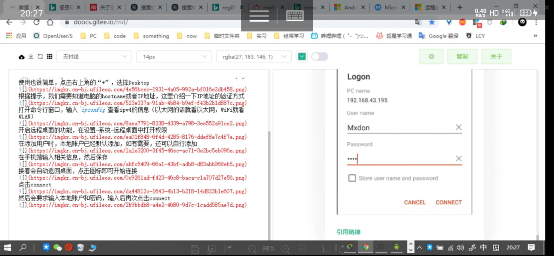 然后会要求输入本地账户和密码,输入后再次点击connect
