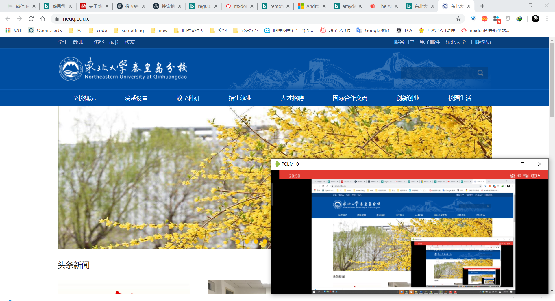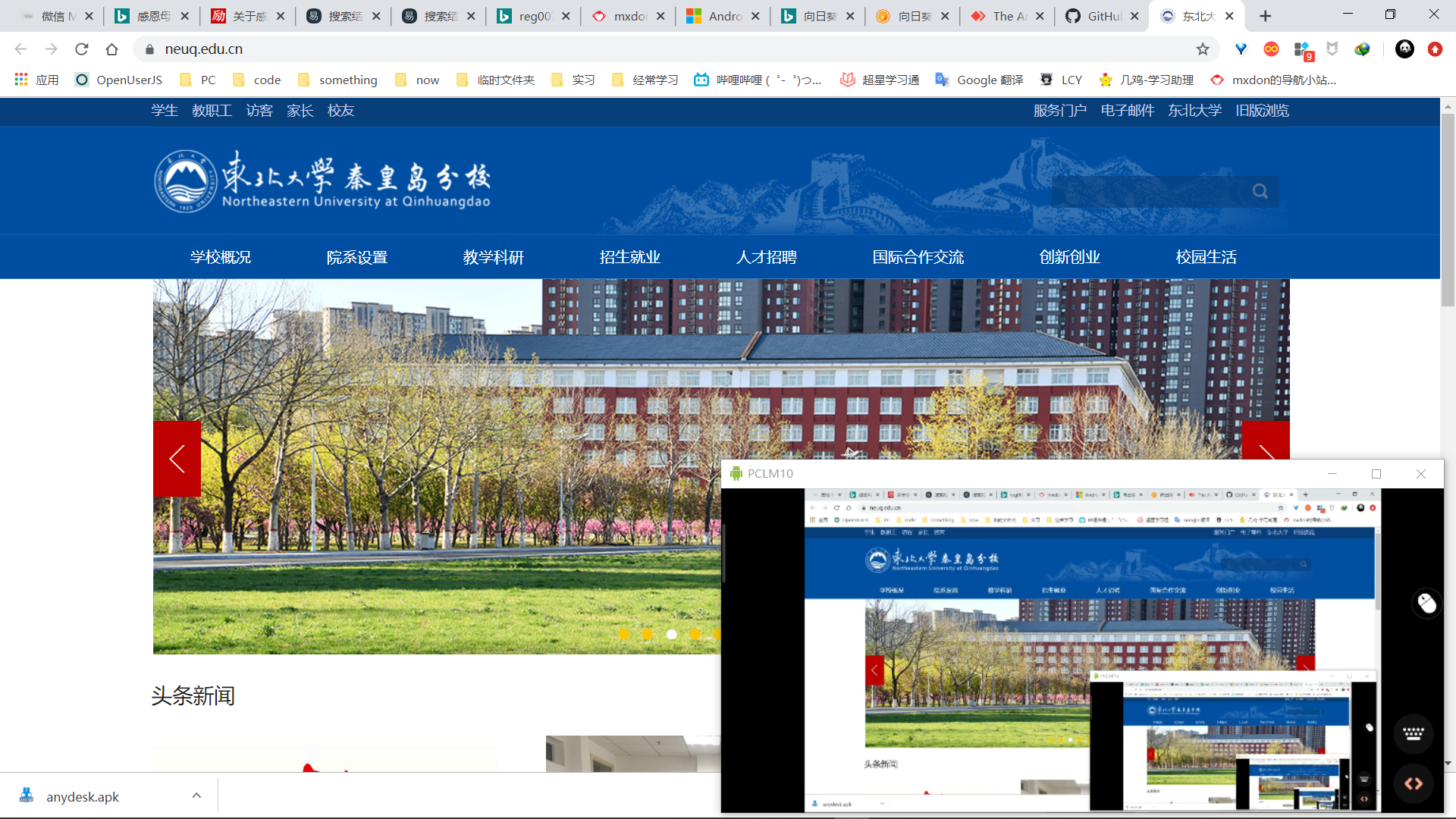 手机端控制电脑访问学校官网截图如下: